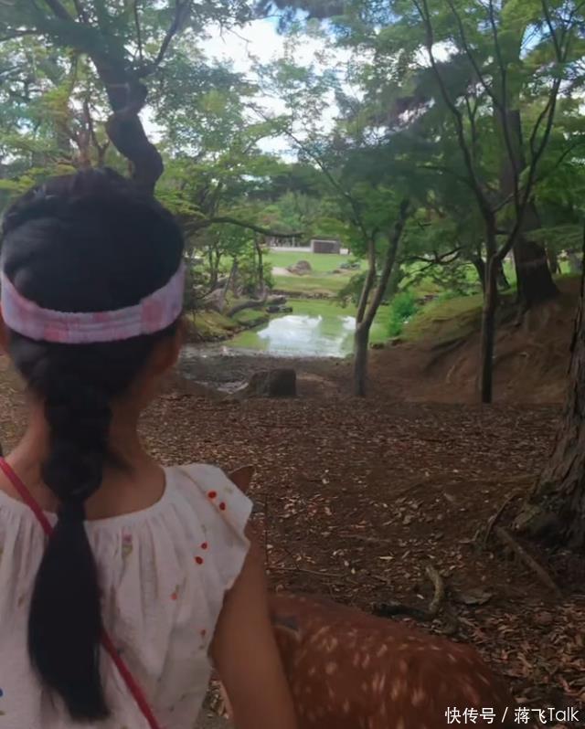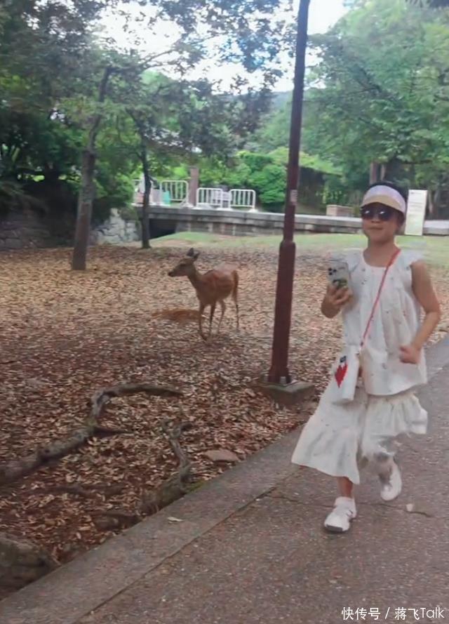 和森林北女儿全然不同的,是章子怡的女儿醒醒,两个小姑娘都是9岁,但看到鹿的表现完全不一样,醒醒走在最后面,一直拿着手机在拍摄小鹿。之后还用手摸了摸小鹿,脸上完全是兴奋的表情,能看出胆子很大。